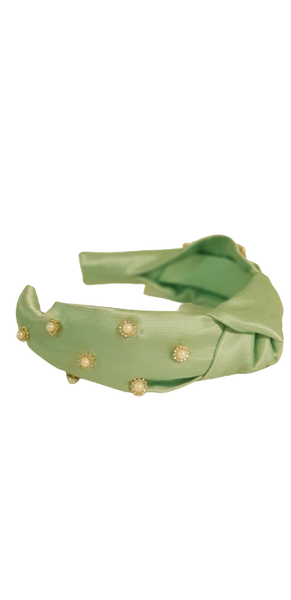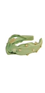 عصابة رأس مصممة بلون النعناع واللؤلؤ