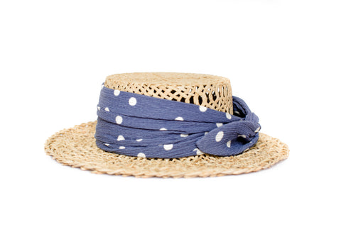 • Designer Straw Polka Dot Blue Hat