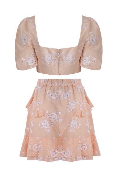 Seaside Whisper Peach Designer Crop Top & Skirt