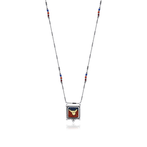 青金石珊瑚公牛項鍊